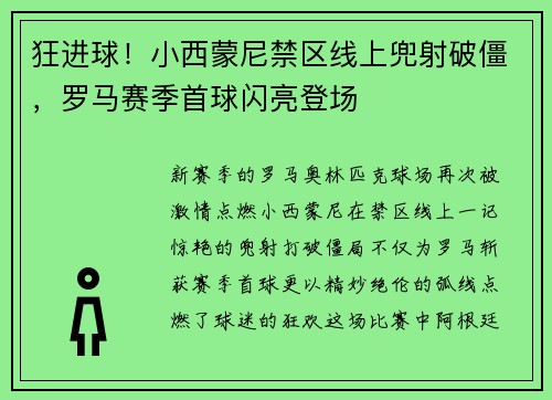 新赛季的罗马奥林匹克球场再次被激情点燃,小西蒙尼在禁区线上一记惊艳的兜射打破僵局,不仅为罗马斩获赛季首球,更以精妙绝伦的弧线点燃了球迷的狂欢。这场比赛中,阿根廷前锋用细腻的技术与冷静的头脑证明了自...